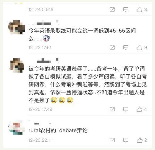 張曉雨(yǔ)是(shì)今年(nián)290萬考研大(dà)軍中的(de)一(yī)員(yuán),對(duì)于今年(nián)的(de )英語(一(yī))卷,她(tā)覺得(de)難度在中等偏上(shàng)。“雖然做(zuò)的(de)時(shí)₩候沒感覺太難,但(dàn)考後一(yī)對(duì)答(dá)案,心都(dōu)涼了(le)。”張曉雨(yǔ)說(shuō)。